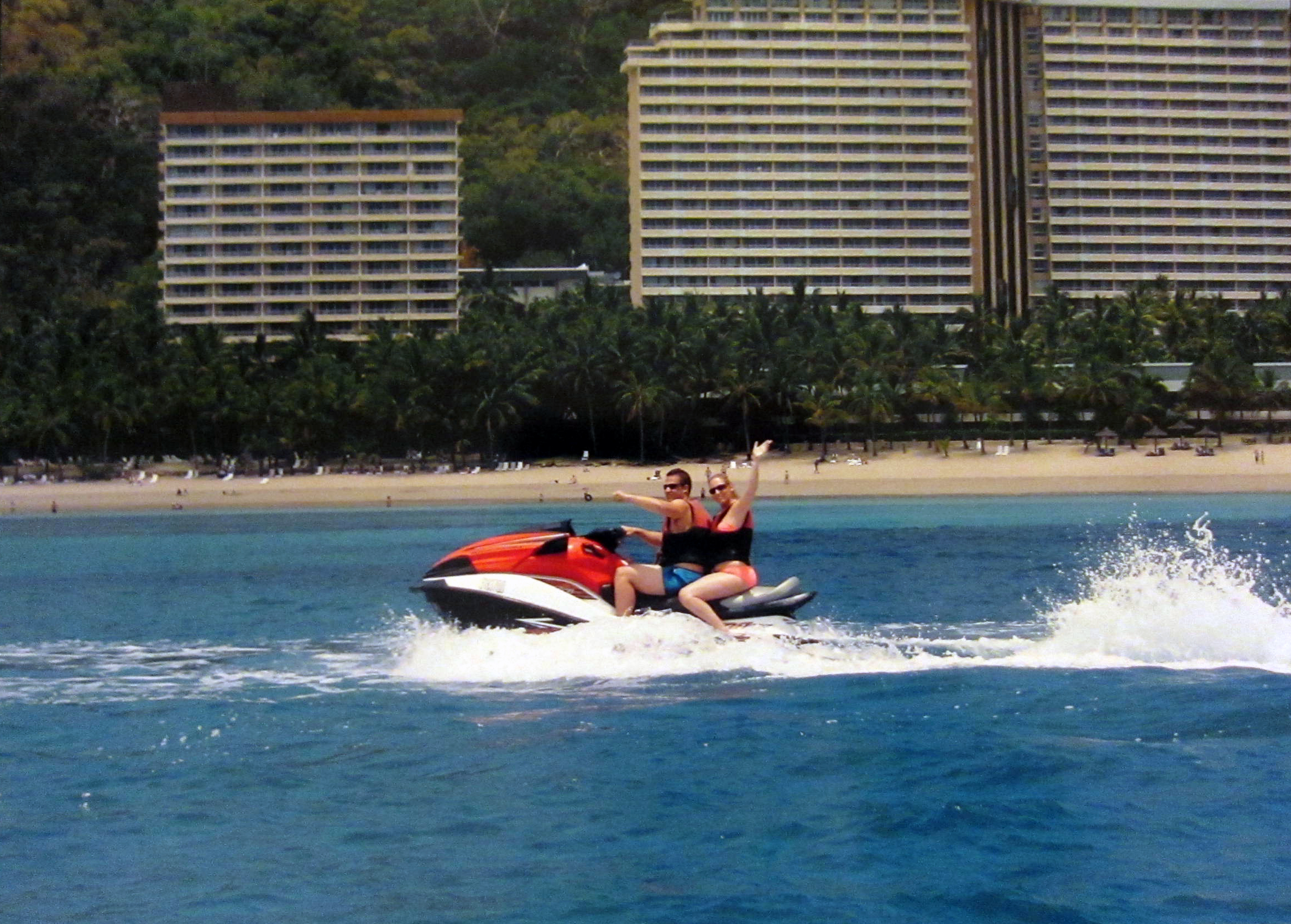 We hired two jet skis, one driven by Nick and one by Dave (Nick’s Dad). I was on the back of Nick’s which was probably for the best as it turned out to be quite an upper body workout! Also at $220 per jet ski for an hour tour around the island we would have been broke!